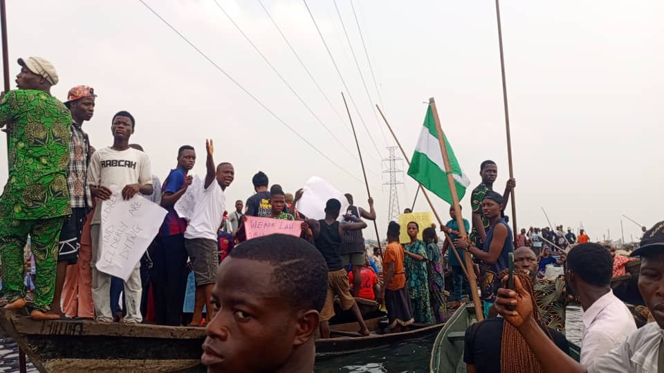 They carried placards with messages including “Please hear our cry, limit demolition to 100 metres,” “Save our homes, lives and the Makoko community,” and “They deceived our illiterate Baales,” while chanting solidarity songs.
